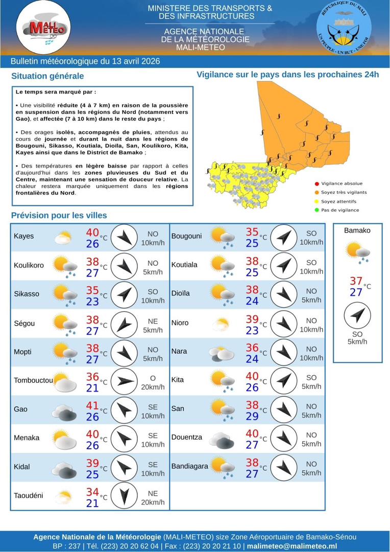 Bamako, 13 avril (AMAP) La visibilité sera réduite dans le [...]