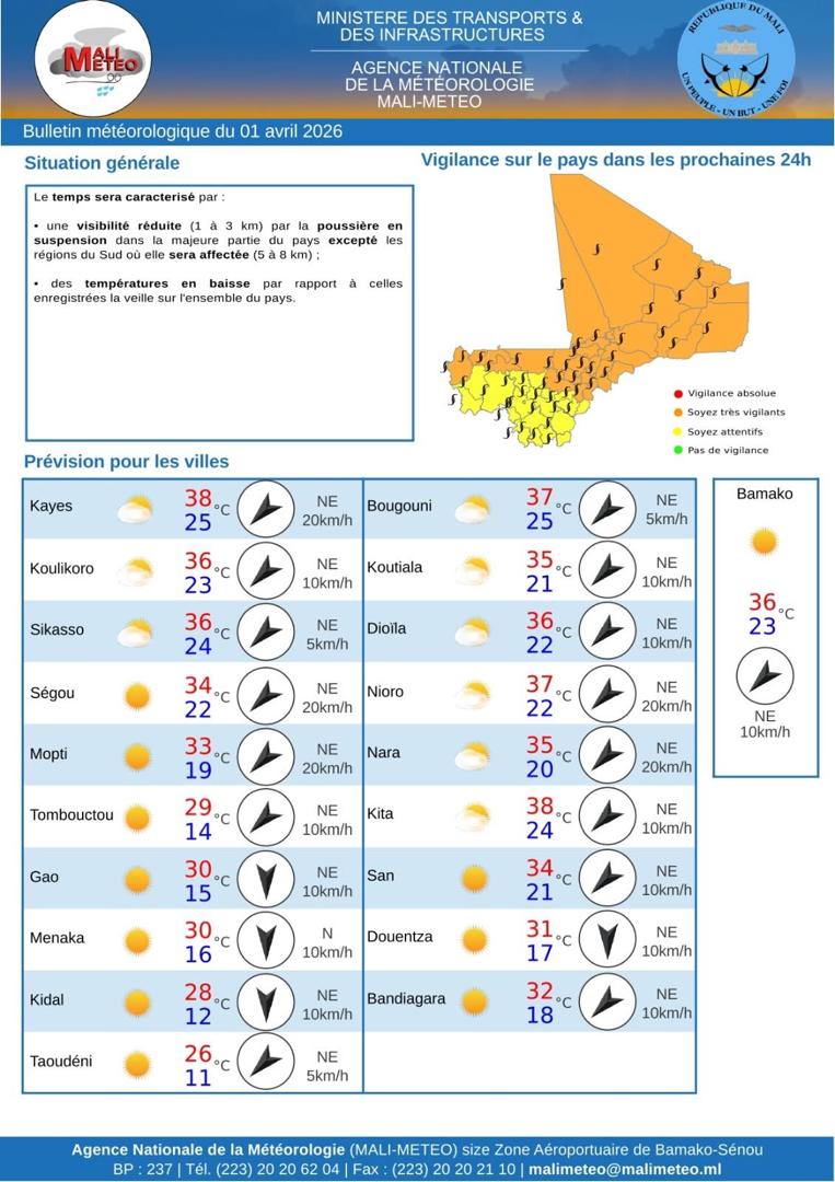 Bamako, 1er avril (AMAP) –L’Agence nationale de la météorologie (Mali-Météo) [...]