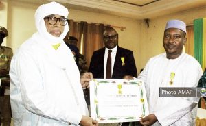 Bamako, 12 mars (AMAP) La cérémonie de remise de décoration au profit de plusieurs agents relevant de son département, a été présidée jeudi par le ministre en charge de le Communication, Alhamdou Ag Ilyène en présence du Grand Chancelier des Ordres Nationaux, le Général Amadou Sagafourou Guèye a constaté l’AMAP.