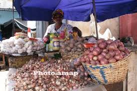 Cap pour l’achat des condiments pour la sauce d’oignons à la viande, communément appelé en Bambara (Nandji Sogoman). D’abord, on arrive chez le vendeur de viande Yakou où le prix du kilogramme de viande, avec os, est notoirement connu de tout le monde : 3 500 Fcfa. Il me sert un demi kilo et pour 500 Fcfa à part, en tout 2 250 Fcfa. Un peu plus loin, nous nous dirigeons chez la vendeuse d’oignons. « Combien fait le kilo ? Elle répond, 550 Fcfa pour les plus petits et 600 Fcfa pour les gros. Je négocie. Chère belle maman, réduisez un peu le prix, s’il vous plaît. J’ai besoin d’un kilo de gros oignons. », dis-je.
