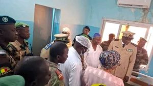 Le Général de brigade Moussa Soumaré, à la tête d’une délégation, s’est d’abord rendu à l’Hôpital Régional Fousseyni Daou, puis au Camp militaire Mamadou Lamine Dramé. Il a exprimé, « au nom du Gouvernement, sa compassion et sa solidarité » envers les victimes, selon un communiqué du gouvernorat. Il leur a transmis les vœux de prompt rétablissement des plus hautes autorités du pays.