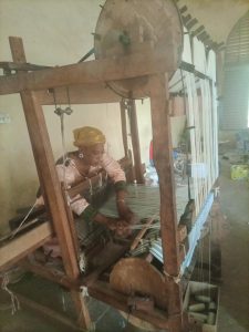 Elle évolue dans le domaine depuis sa tendre enfance et est capable de réaliser 10 à 15 mètres de tissus par jour. Awa explique que le métier demande l’apport de chaque partie du corps : les bras et les pieds qui sont constamment en mouvement.